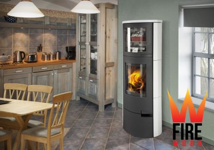 - Радиальная стеклянная дверца духового шкафа гармонируют с дизайном камина