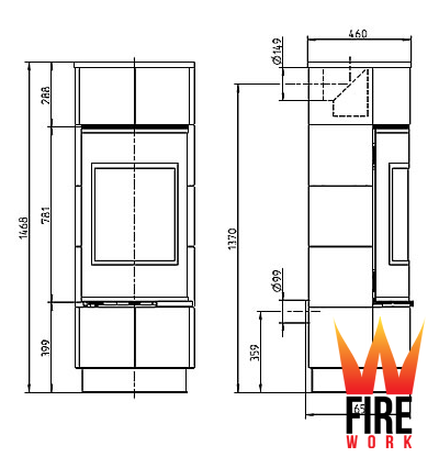 Размеры (мм): 1467*538*465 (в*ш*г)Объем помещения (м³): 98-180Тепловая мощность, кВт: 7.5КПД, %: 80Вид топлива: дерево, угольные брикетыДымоход (мм): 150 (диаметр)Вес, кг: 124